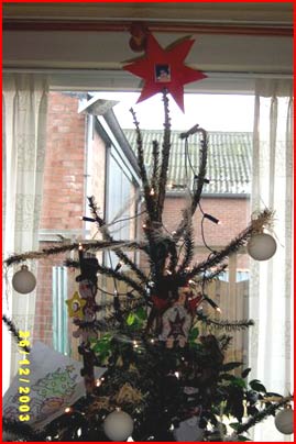 Ik heb van Sinterklaas ook een kaartje gekregen van het concert van K3. Daar mag ik samen met mama naartoe. Na Sinterklaas komt Kerstmis, dus mocht ik samen met mama de kerstboom versieren. Met papa heb ik een ster gemaakt met daarop een foto van Indy en die hebben we helemaal bovenin de boom gehangen. Dan is Indy er met kerstmis toch ook een beetje bij. 18 december hebben we op school kerstviering gehad. Ik mocht meedoen met het toneelstukje. Samen met Sabine, Laura en Martin waren wij spelende kindjes en mochten we samen spelletjes doen. Ik vond het erg leuk dat papa en mama kwamen kijken, en deed de hele tijd naar hen zwaaien. |