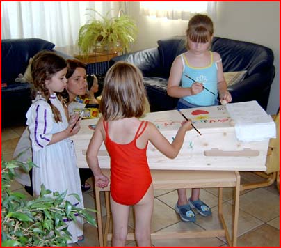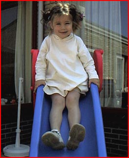 Papa en mama zijn nu weer altijd thuis, dat is ook wel weer even wennen. Ik slaap weer gewoon in mijn eigen bed en mama brengt mij weer iedere dag naar school en komt mij ook weer ophalen. Ik zit nu ook op zwemles, daar hebben we nu ook weer tijd voor. Dat vind ik wel leuk en hopelijk haal ik gauw mijn diploma zodat ik lekker alleen kan zwemmen zonder kurkjes om. 19 juli 2003 |