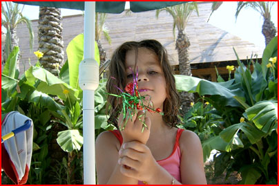 September 2003 Ik zit weer op school. Dit vind ik weer erg leuk, nu kan ik weer lekker gaan spelen bij allemaal vriendinnetjes. Het is wel weer even wennen en ook wel vermoeiend. Mama vind het ook wel weer vreemd, zij brengt mij naar school en komt me halen, dan ga ik ergens spelen of ik moet naar de zwemles, dus veel thuis ben ik niet. Van 23 september t/m 30 september ben ik alweer op vakantie geweest. Dit was erg gaaf. Lekker met het vliegtuig mee. Ik mocht aan het raampje zitten zodat ik kon zien waar we vlogen. In Turkije heb ik lekker elke dag gezwommen, in het zwembad en in de zee. Er waren ook waterglijbanen waar ik al alleen vanaf durfde. Ik heb ook al zonder mijn kurk om gezwommen. Op de zwemles mag ik dat nog niet, maar op vakantie heb ik dat wel al geoefend. En dat ging hardstikke goed. |