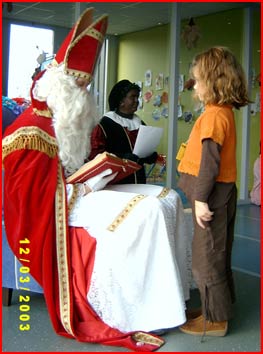 December 2003 Eindelijk was het zover. Sinterklaasavond. Ik moest om 16.45uur nog naar de zwemles. Daar kreeg ik van Juf Jose een briefje mee waarop staat dat ik mag gaan proefzwemmen voor diploma A. Goed he. Hier was ik zo blij mee dat ik dit zo snel mogelijk aan papa wilde laten zien toen ik thuiskwam. Maar toen we thuiskwamen zei mama dat ze iets voor de voordeur zag staan, dus moest ik toch even voor het huis gaan kijken. En ja hoor, Sinterklaas was al geweest (en ik had mijn tekening voor Sinterklaas nog eens niet klaar). Er stonden allemaal kadootjes voor de deur. Op dat moment was ik dus alweer helemaal vergeten dat ik mag proefzwemmen, want ik wilde direct de kadootjes open gaan maken. Opa en oma Heusden waren ook bij ons en samen hebben we alle kadootjes opengemaakt. Het was erg gezellig en ik ben erg blij met alle kadootjes. |